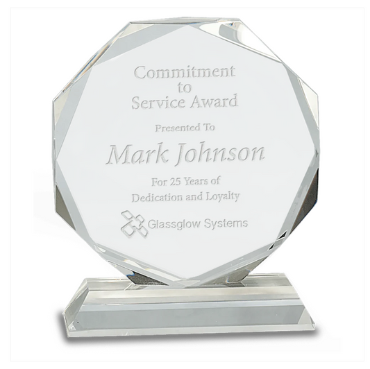 Octagon Slant-Top Crystal on Black Round Pedestal Base