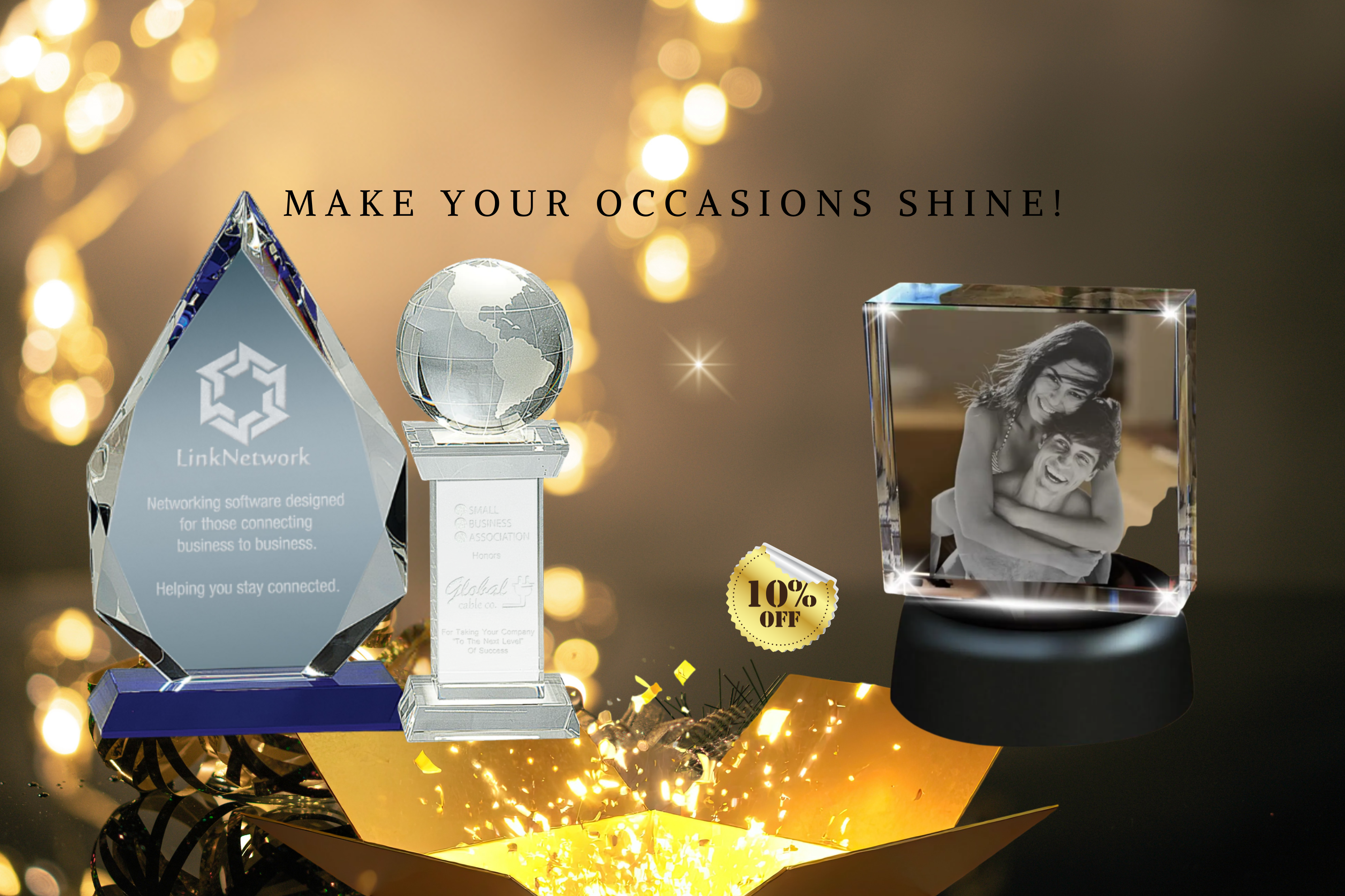 Octagon Slant-Top Crystal on Black Round Pedestal Base