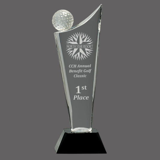 10 3/4" Clear Crystal Golf Wave on Black Pedestal Base