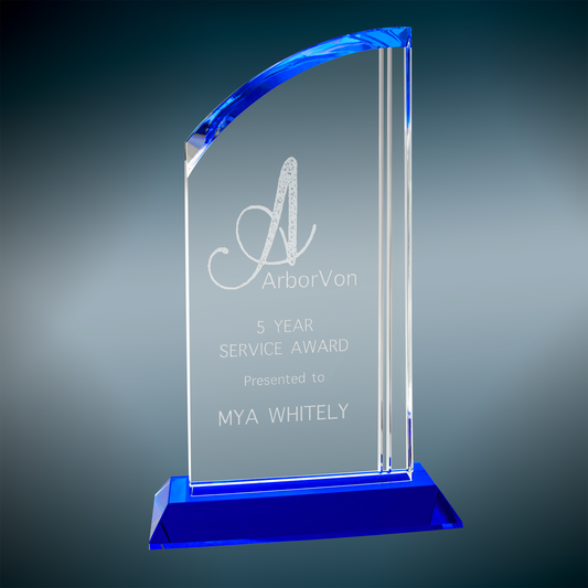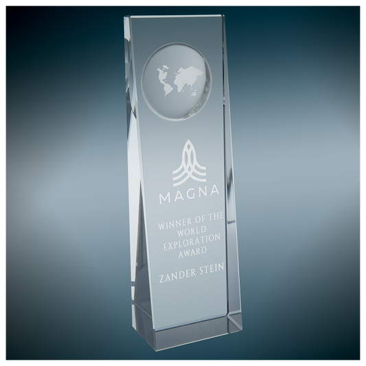 Clear Crystal Slant Front Rectangle with Engraved Globe