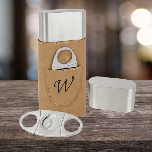 Cigar Steel and Leatherette Case with Cutter in a variety of Leather Colors