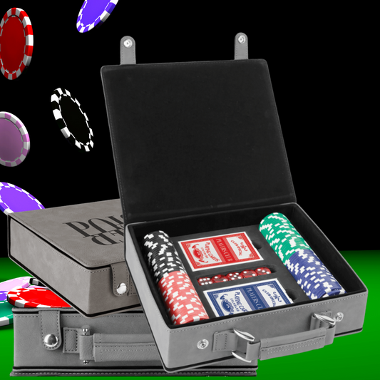 Black/Gold Laserable Leatherette 100 Chip Poker Set