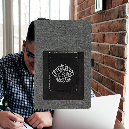 5 1/4" x 8 1/4" Gray w/Black Laserable Leatherette Journal with Cell/Card Slot