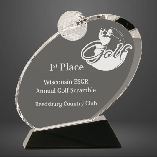 6 1/2" Clear Crystal Oblong Golf Award on Black Crystal Base