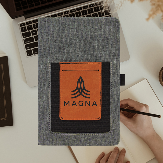 5 1/4" x 8 1/4" Gray w/Rawhide Laserable Leatherette Journal with Cell/Card Slot