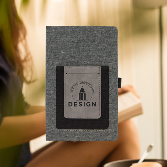 5 1/4" x 8 1/4" Gray w/Gray Laserable Leatherette Journal with Cell/Card Slot