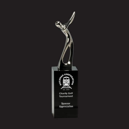 8 1/2" Silver Metal Golf Figure on Black Crystal Pedestal