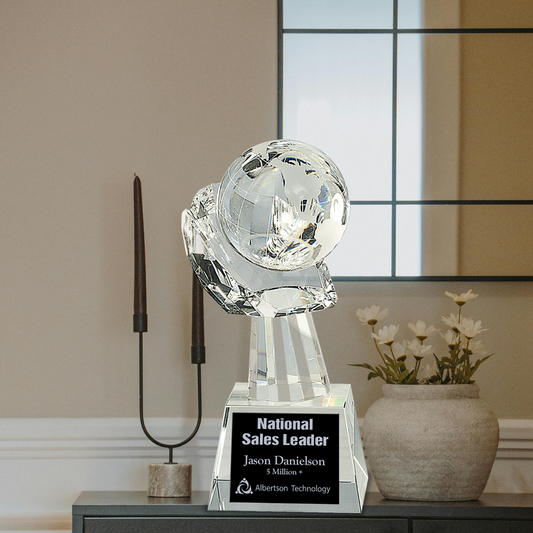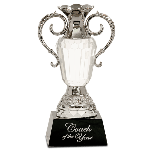 8" Crystal Cup with Silver Metal Handles on Black Pedestal Base