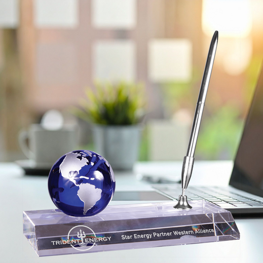 8" Clear Flame Accent Glass on Blue & Black Reflective Base
