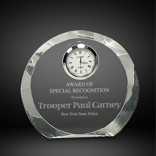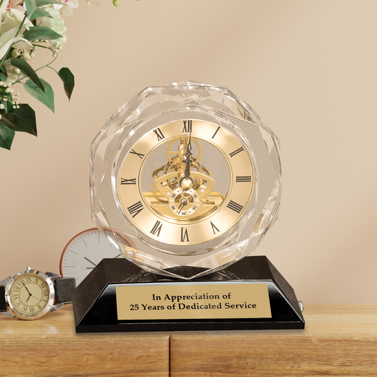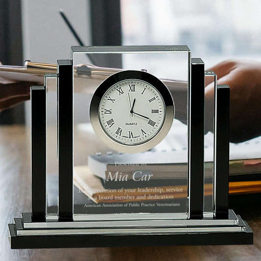 5 3/4" Clear Crystal Clock on Black Pedestal Base