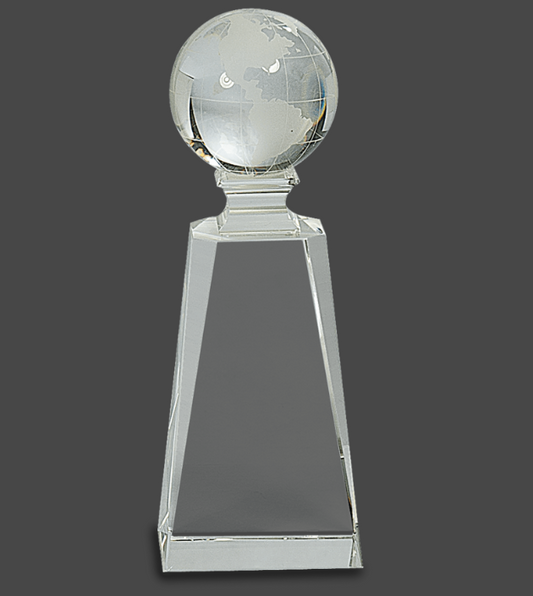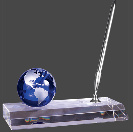 Blue Crystal Globe on Clear Crystal 3D Cube Base