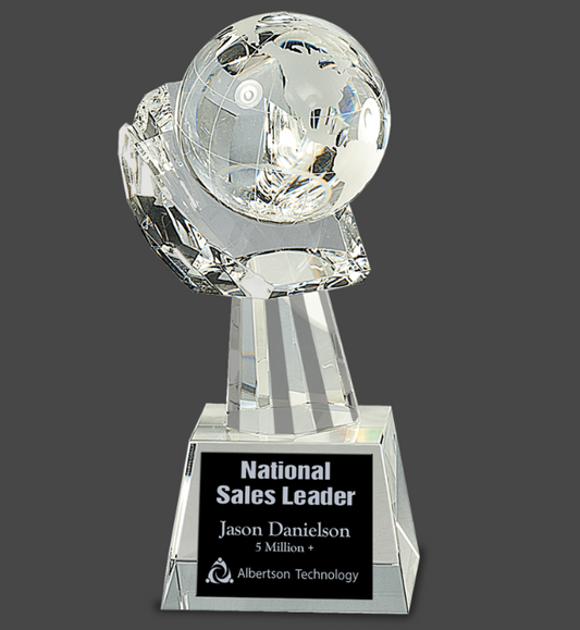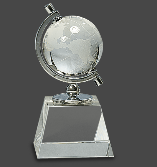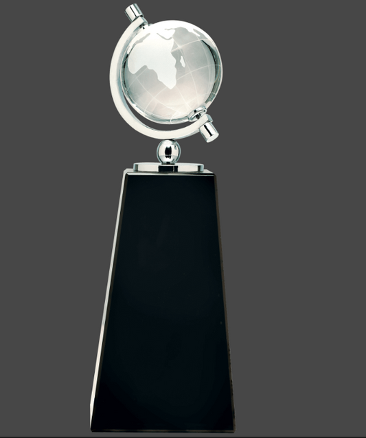 10" Clear Crystal Globe with Silver Men/Stand on Black Piano Finish Base