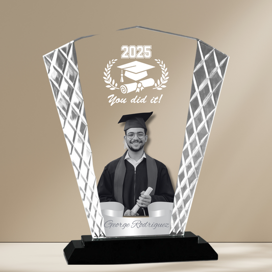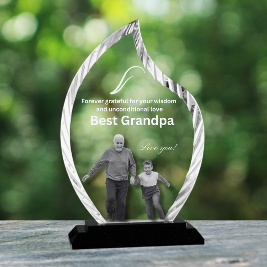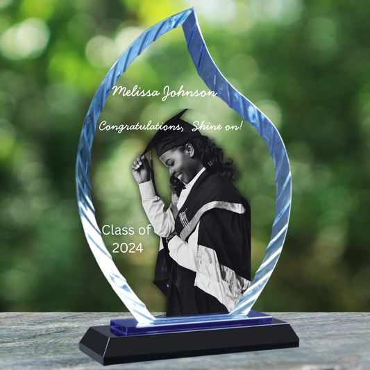 8" Clear Flame Accent Glass on Blue & Black Reflective Base