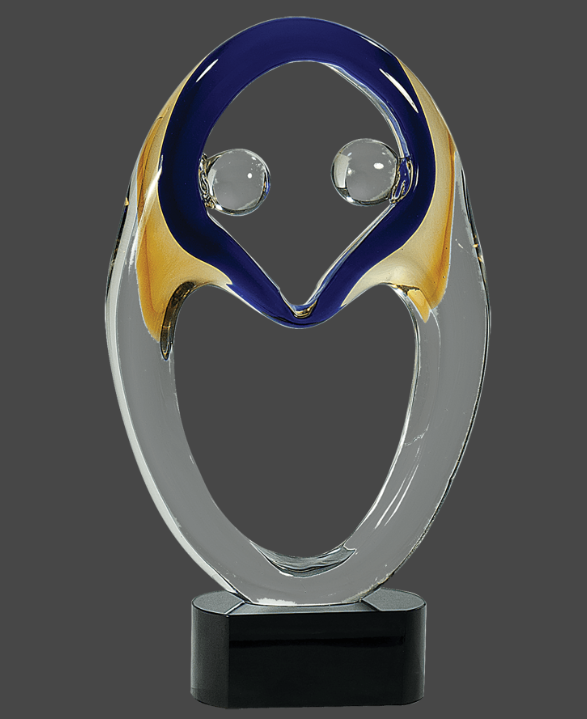Artistically inspired hand blown glass sculpture. Each piece is uniquely different, colors and sizes will vary slightly. Premier Art Glass is mounted on a black glass base. Packaged individually in a lined gift