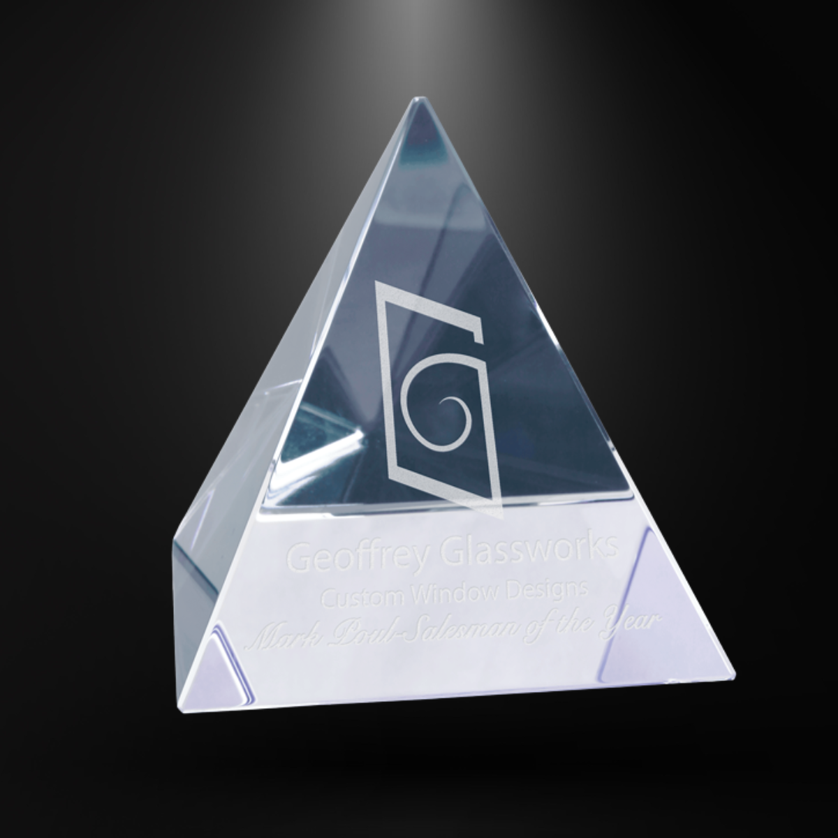Introducing our stunning Premier Crystal Award, a masterpiece meticulously crafted to make your recognition moments unforgettable. Measuring 3 1/8 inches in length, width, and height, this clear optic crystal pyramid is a bold statement piece that stands elegantly on its own.