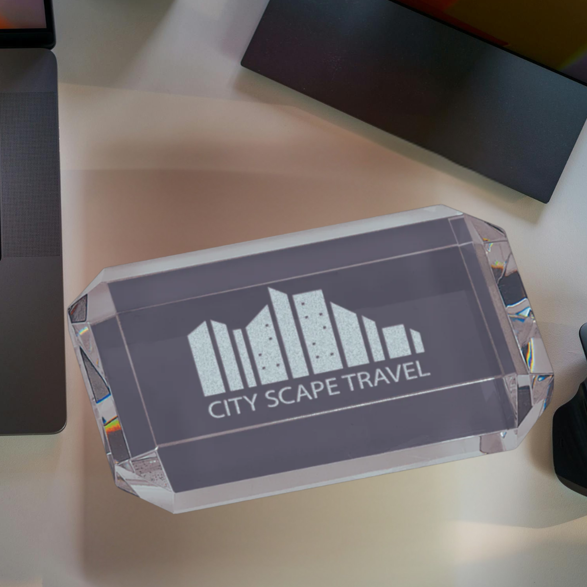 Introducing our Premier Crystal Paperweight – a stunning addition to any desk or workspace! This exquisite piece is handmade from high-quality optic crystal, featuring elegant clipped corners that give it a distinctively modern look. Each paperweight is unique, with slight variations in size, ensuring that yours is one-of-a-kind.